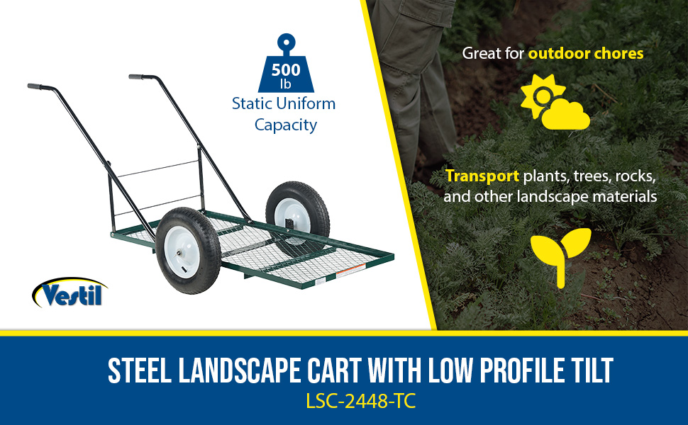 LSC-2448-TC LSC-2448-TCSteel Landscape Cart with Low Profile Tilt 53 In. x 24 In. x 45 In. 500 Lb. Capacity GreenUniform Static Capacity (lb.): 500