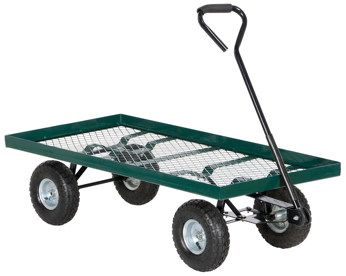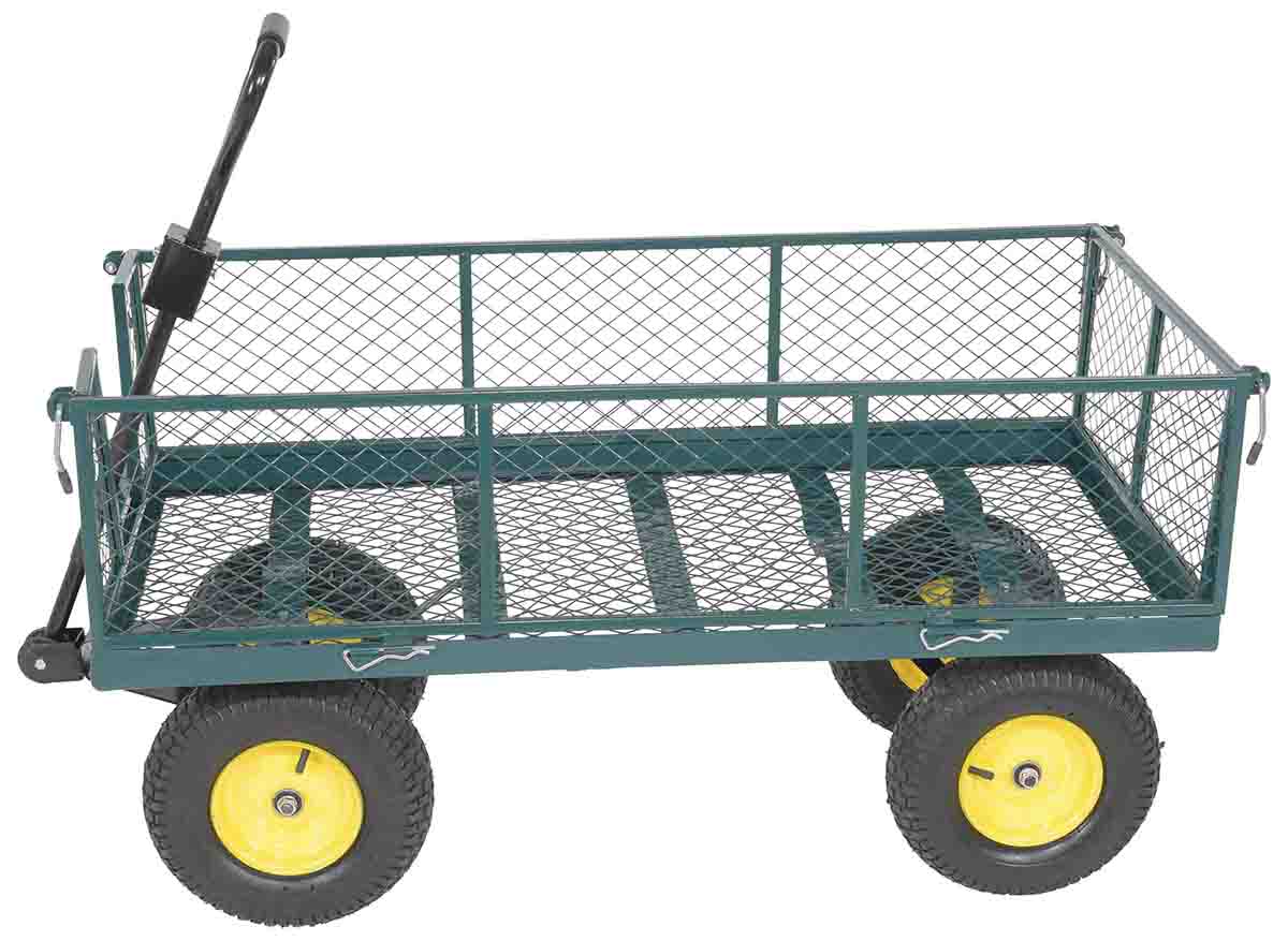 Transport plants, flowers, trees, shrubs, rocks, and similar materials or parts with our full line of Landscape Carts. These carts are rugged and easy to maneuver with their large pneumatic tires. All carts have mesh sides and bottoms to allow dirt, small rocks, and water to drain through. Steel construction. All carts ship knockdown. Assembly required.