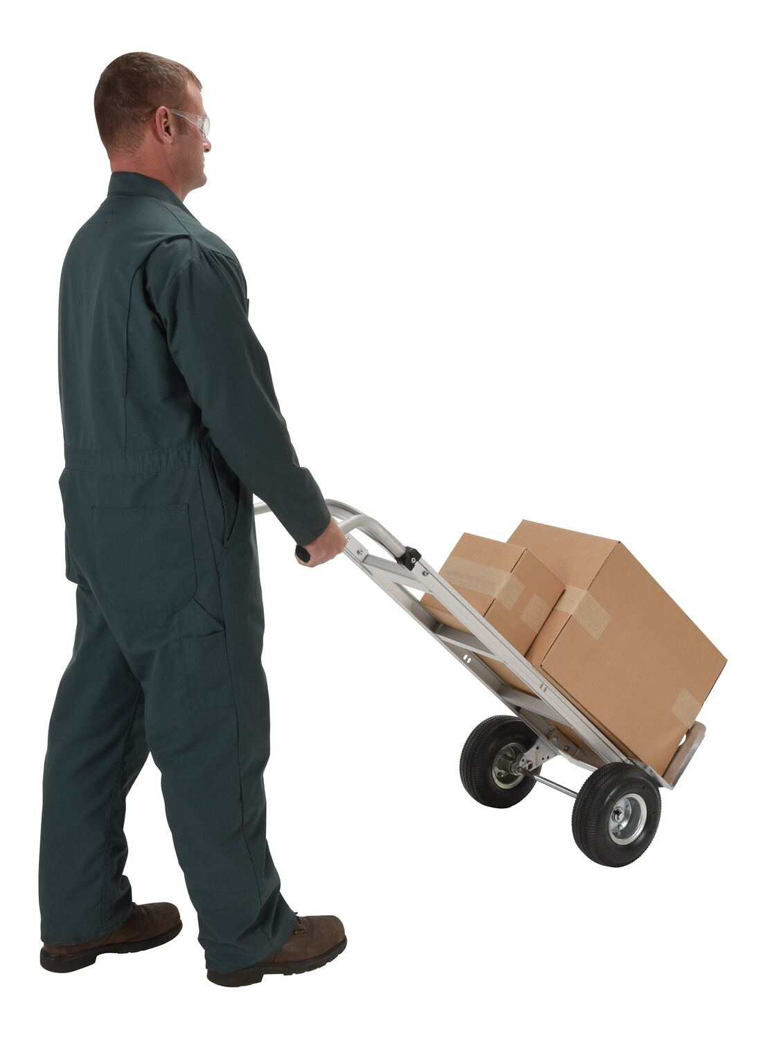 Maximize control for different loads with our Dual Handle Hand Trucks. These hand trucks can transport boxes or crates wherever they are needed. Transport loads smoothly and evenly over rough or uneven floors. Ships knockdown. Choose steel or aluminum, available with pneumatic or solid rubber wheels. Assembly required.