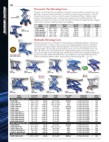 moving loads over terrain. These carts minimize operator bending and lifting. Hydraulic system
