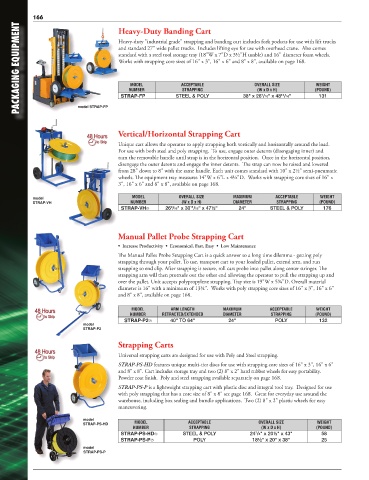 Powder coat finish. Poly and steel strapping available separately on page 168.