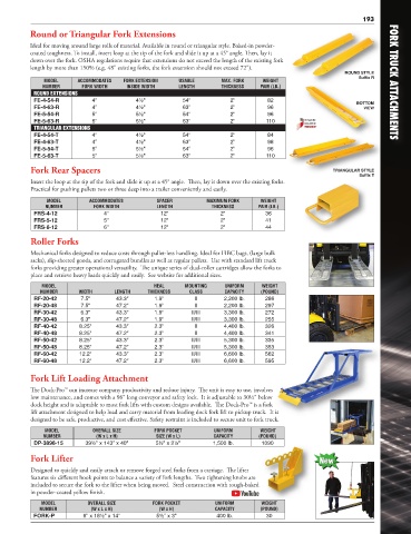 MODEL ACCOMMODATES FORK EXTENSION USABLE MAX. FORK WEIGHT FORK TRUCK ATTACHMENTS