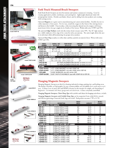FORK TRUCK ATTACHMENTS cleanup applications; docks, warehouses, and parking lots. Lightweight aluminum body with