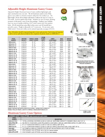 ALUMINUM GANTRY CRANE OPTIONS (WHEN PURCHASED WITH GANTRY CRANE)