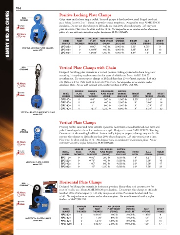 GANTRY AND JIB CRANES POSITIVE LOCKING PLATE CLAMPS gear. Safety factor is 2 to 1. Baked-in powder-coated toughness. Designed to meet ASME B30.20 9