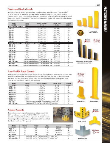 AS-125-4PK� ANCHOR BOLTS FOR CONCRETE (4) 1/2" x 5" (G6 UNITS) 4 STRUCTURAL RACK GUARDS