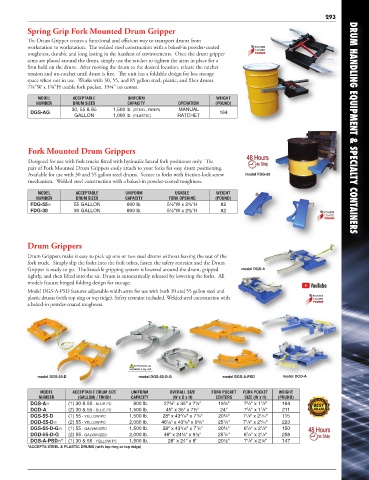 Available for use with 30 and 55 gallon steel drums. Secure to forks with friction-lock screw model FDG-55