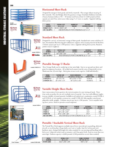 capacity per shelf. Four sided access when using 4' x 8' sheet or smaller. Supplied with lag