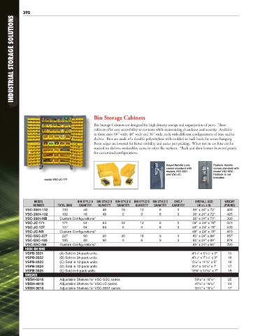 MODEL BIN STYLE A BIN STYLE B BIN STYLE C BIN STYLE D BIN STYLE E SHELF OVERALL SIZE WEIGHT
