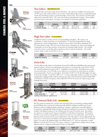 404                         Tote Lifters    HAND PUMP OR 12V DC