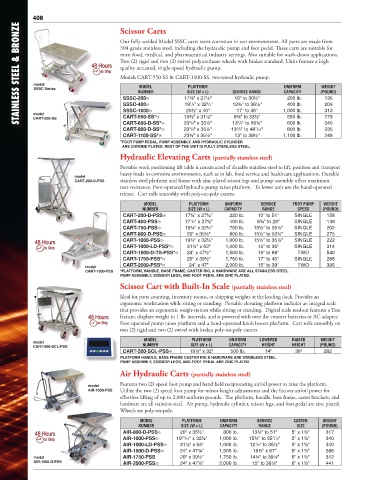 STAINLESS STEEL & BRONZE model 304 grade stainless steel, including the hydraulic pump and foot pedal. These carts are suitable for