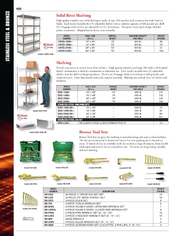 High quality stainless steel solid shelving is made of type 304 stainless steel construction with brushed