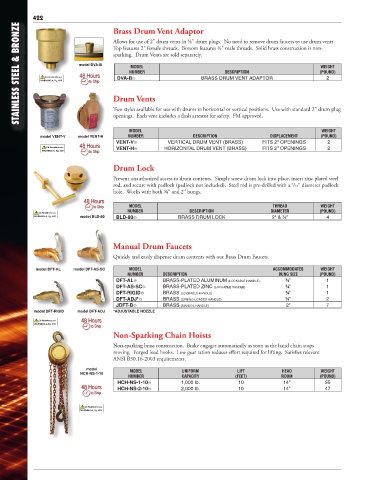 Non-sparking brass construction. Brake engages automatically as soon as the hand chain stops