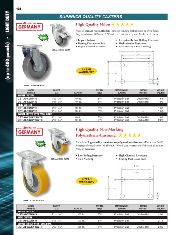 MODEL CASTER OVERALL CASTER WHEEL CASTER WEIGHT