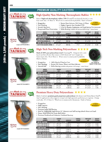 tread color. 85 ±5 Shore A. Wheel core is constructed of aluminum. Made in Taiwan.