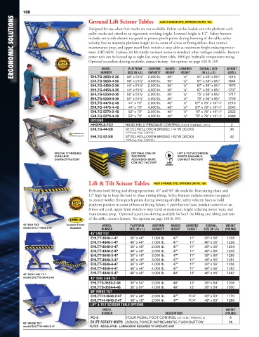 100 Ground Lift Scissor Tables 460V 3-PHASE STD, OPTIONS ON PG. 108