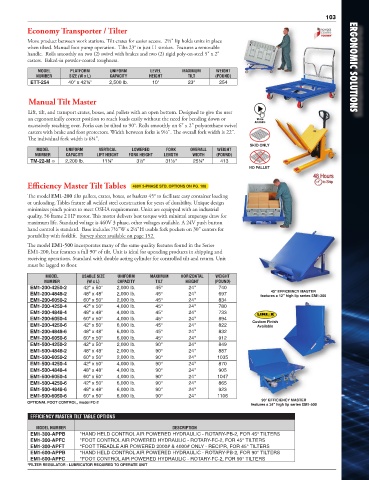 Efficiency Master Tilt Tables 460V 3-PHASE STD, OPTIONS ON PG. 108