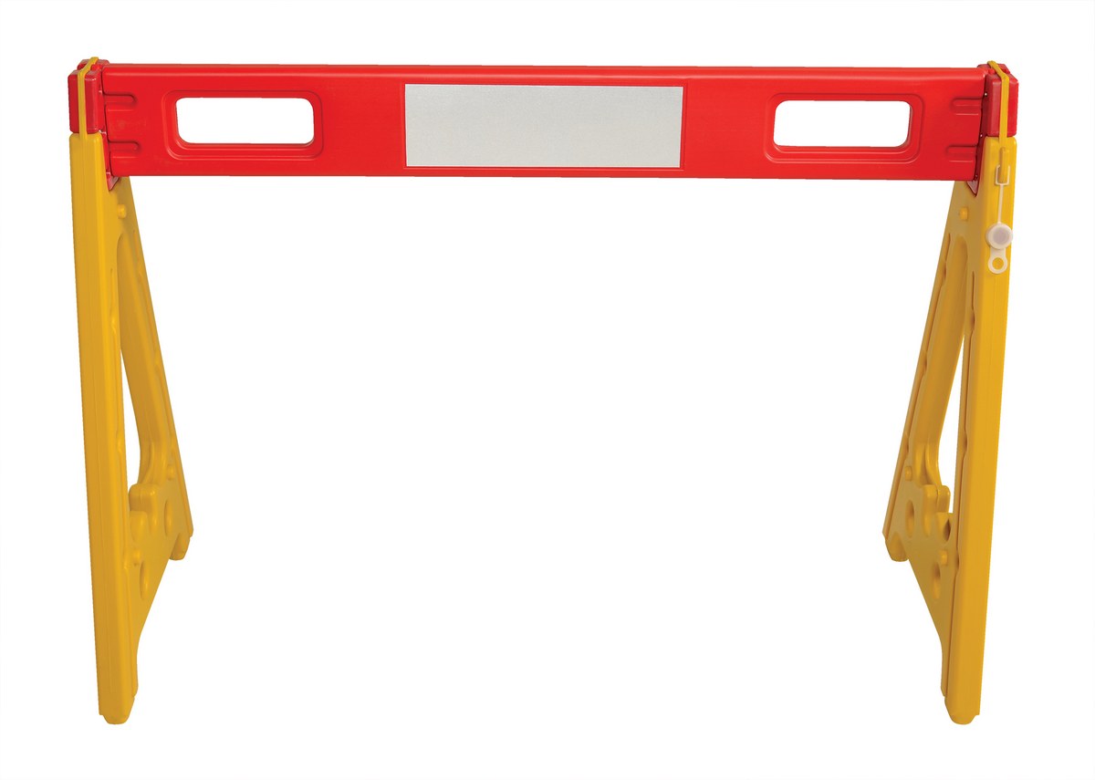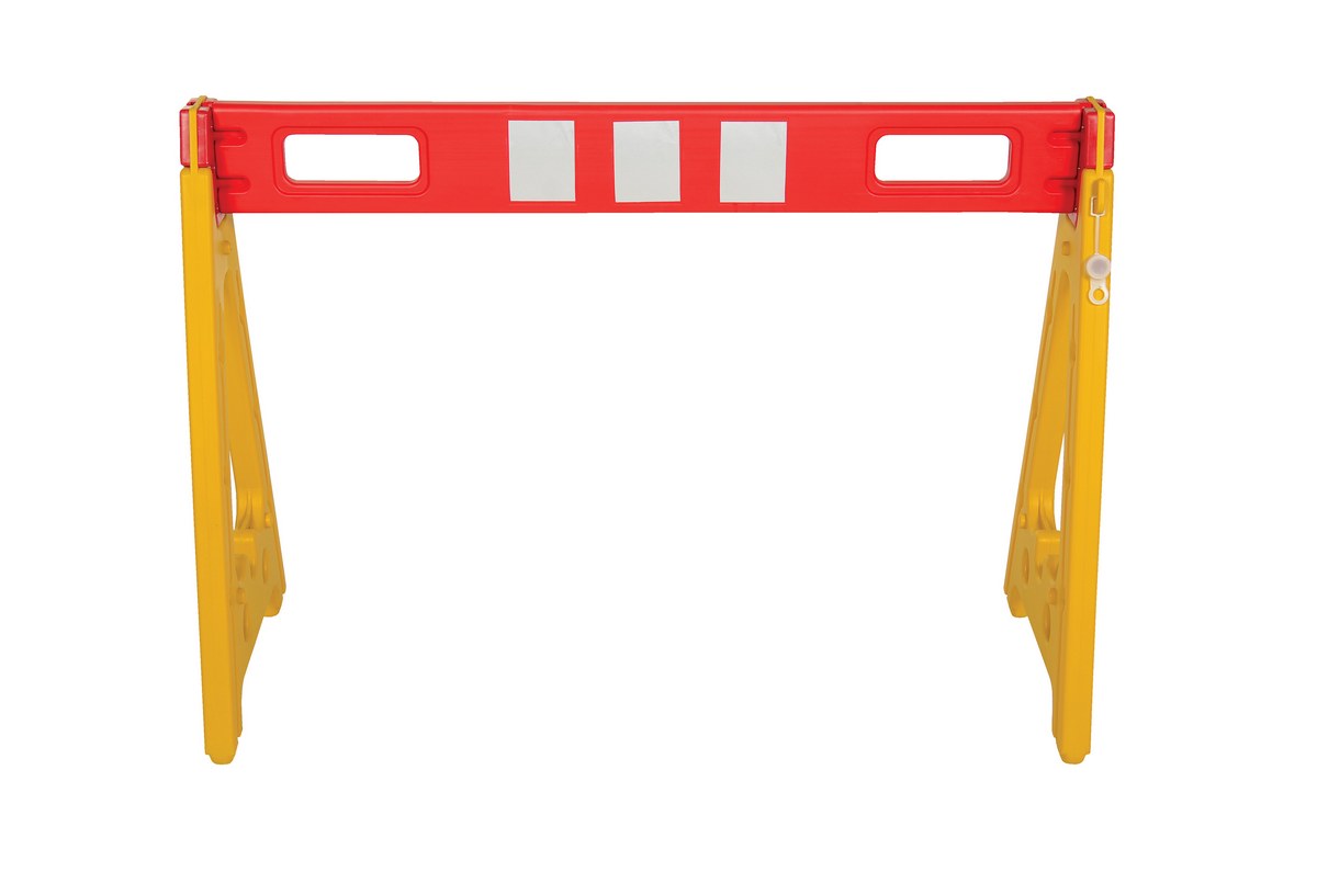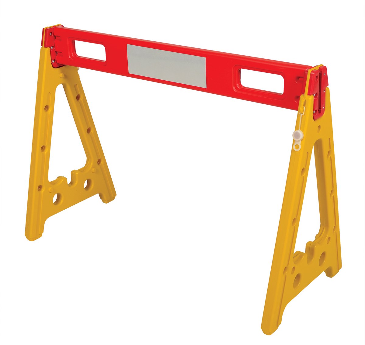 Block aisle ways, parking spaces, or other unauthorized access areas with an A-Frame barricade. It's designed for quick set up and convenient storage. The A-Frame barricade can be filled with water or sand for increased stability. Features three (3) reflectors. Easy to assemble/disassemble and store. Anchoring is easy with pre-drilled holes.