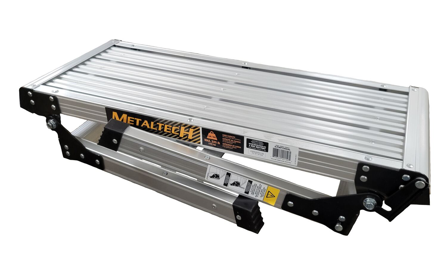 Aluminum Folding Step Platform 12 In. x 30 In. 225 Lb. Capacity SilverWhen you need a step up, look for the portable work platform! The single step design is great for those work areas where ladders just don't fit. With a simple lightweight design, the platform can easily be carried by a single person around the work area. The feet of the platform are capped with rubber making them resistant to the danger often accompanied with wet slippery floors.