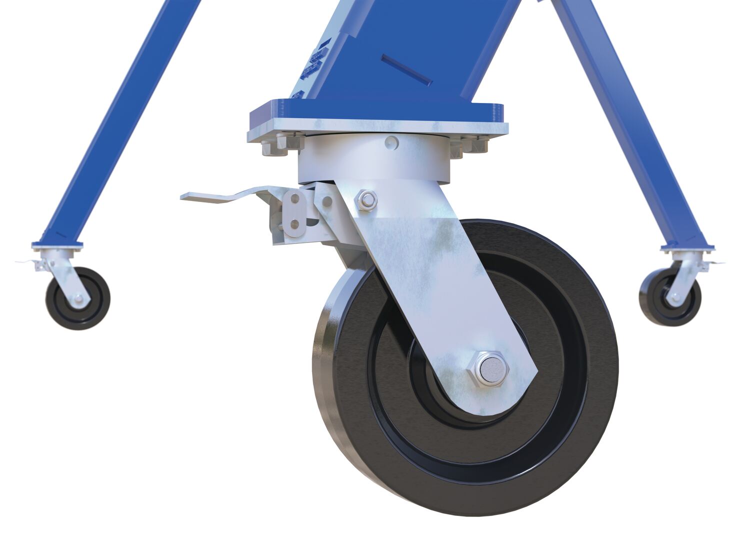Steel Adjustable Height Gantry Crane with Total Locking Phenolic Casters 20 Ft.Wide x 16 Ft. Max Usable Height 6,000 Lb. Capacity BlueThe adjustable height steel gantry crane is designed for transporting and positioning materials along the beams length. The cranes beam height can be adjusted to better conform to the working conditions making it both ergonomically friendly and cost effective. Facilitate easy mobility from one area to another with total locking casters. Height is adjustable in 6" increments. Do not move units while loaded. Hoist and trolley can be ordered separately. A painted blue finish protects the unit from rust. Designed for semi-permanent or permanent applications.