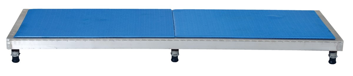 Aluminum Adjustable Work-Mate Stand 72 In. x 24 In. x 5-3/4 In. 500 Lb. Capacity SilverThe adjustable work-mate stand minimizes fatigue by elevating workers to heights that are comfortable and ergonomically correct. Especially useful when multiple shift employees operate the same piece of machinery. The ergonomic matting deck style provides comfort for the operator who stands all day. The height of each leg can be adjusted individually to ensure proper working height.