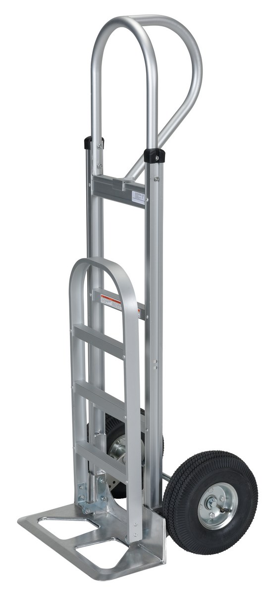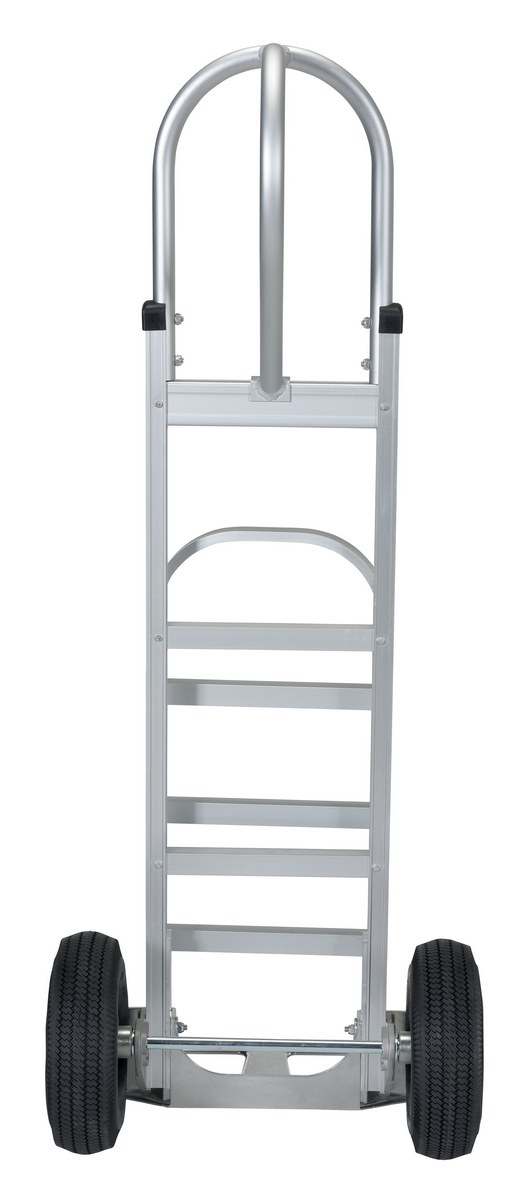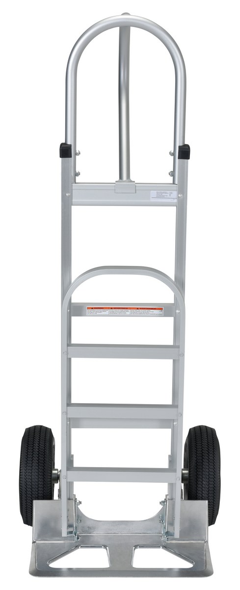 Aluminum P Handle Truck with Pneumatic Wheels 18-1/2 In. x 20-1/2 In. x 52-1/2 In. 500 Lb. CapacityThe "P" handle Hand Truck is ideal for transporting heavy and awkward loads. This truck works well for the user that needs to free up one hand. The "P" shaped handle makes the truck easy to steer and maneuver.
