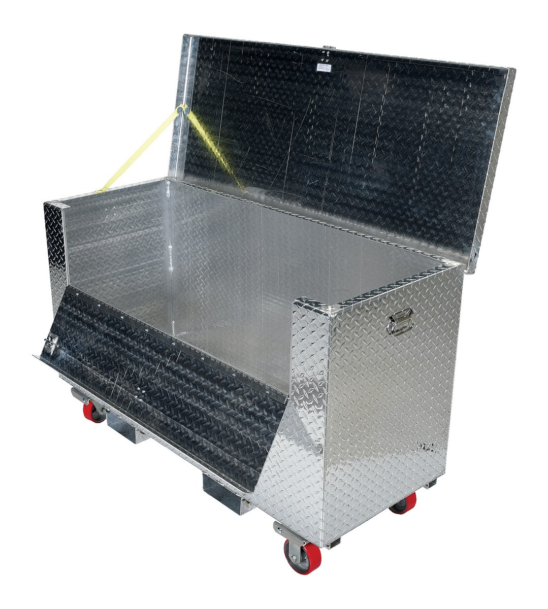 Aluminum Portable Tool Box with Fold Down Front Door with Casters and Fork Pockets 25-7/8 In. x 61-1/4 In. x 38-11/16 In. 2500 Lb. Capacity Silver