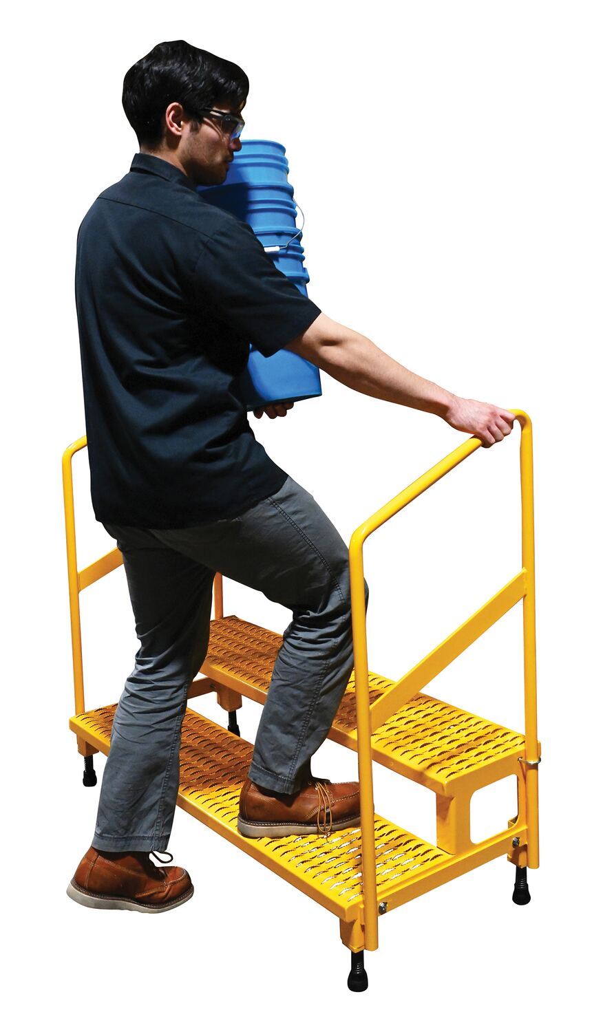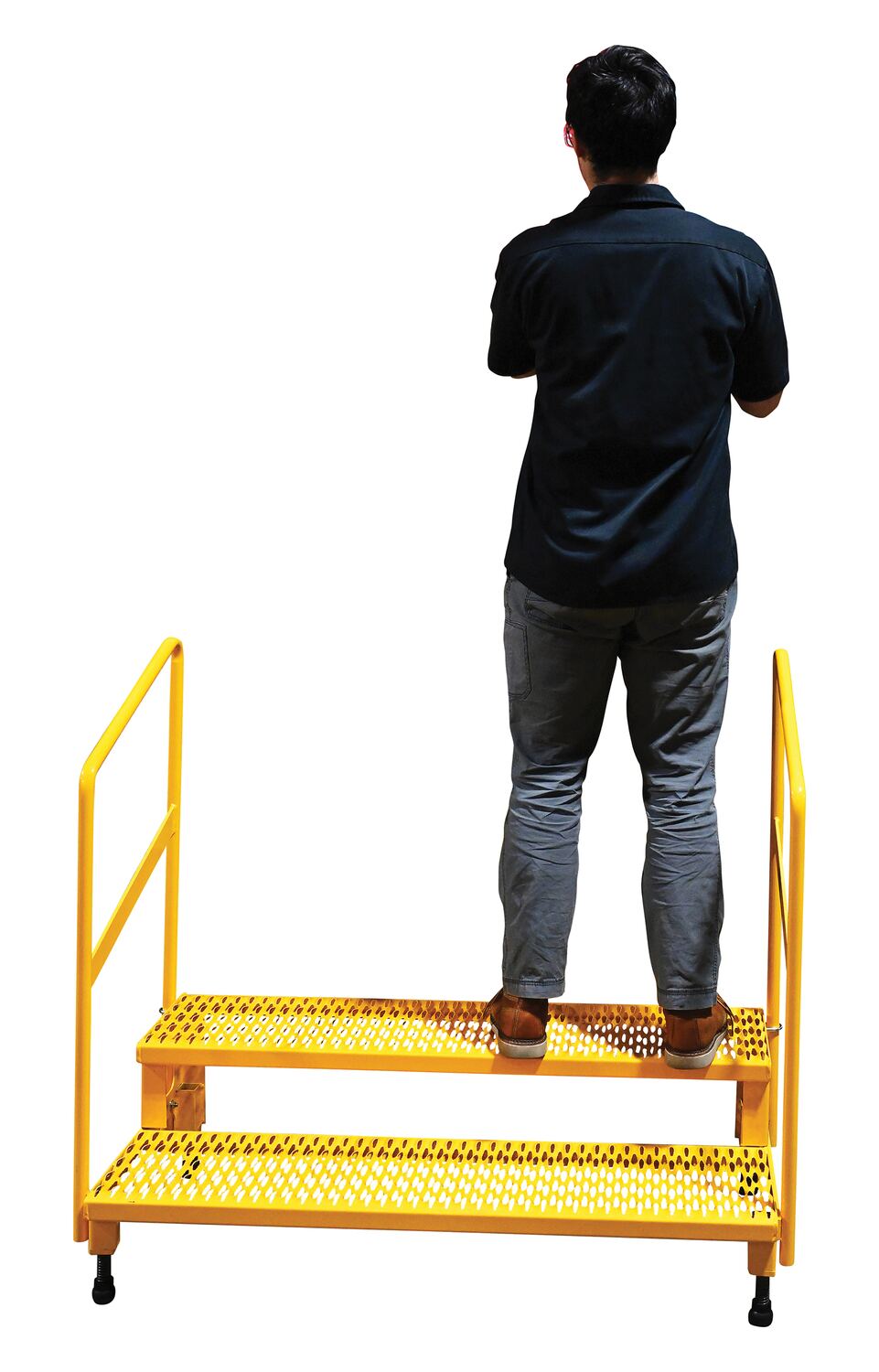 Steel Adjustable Step Mate Stand 2 Step with Handrails 22-7/8 In. x 50-1/2 In. x 43-1/8 In. 500 Lb. Capacity Yellow