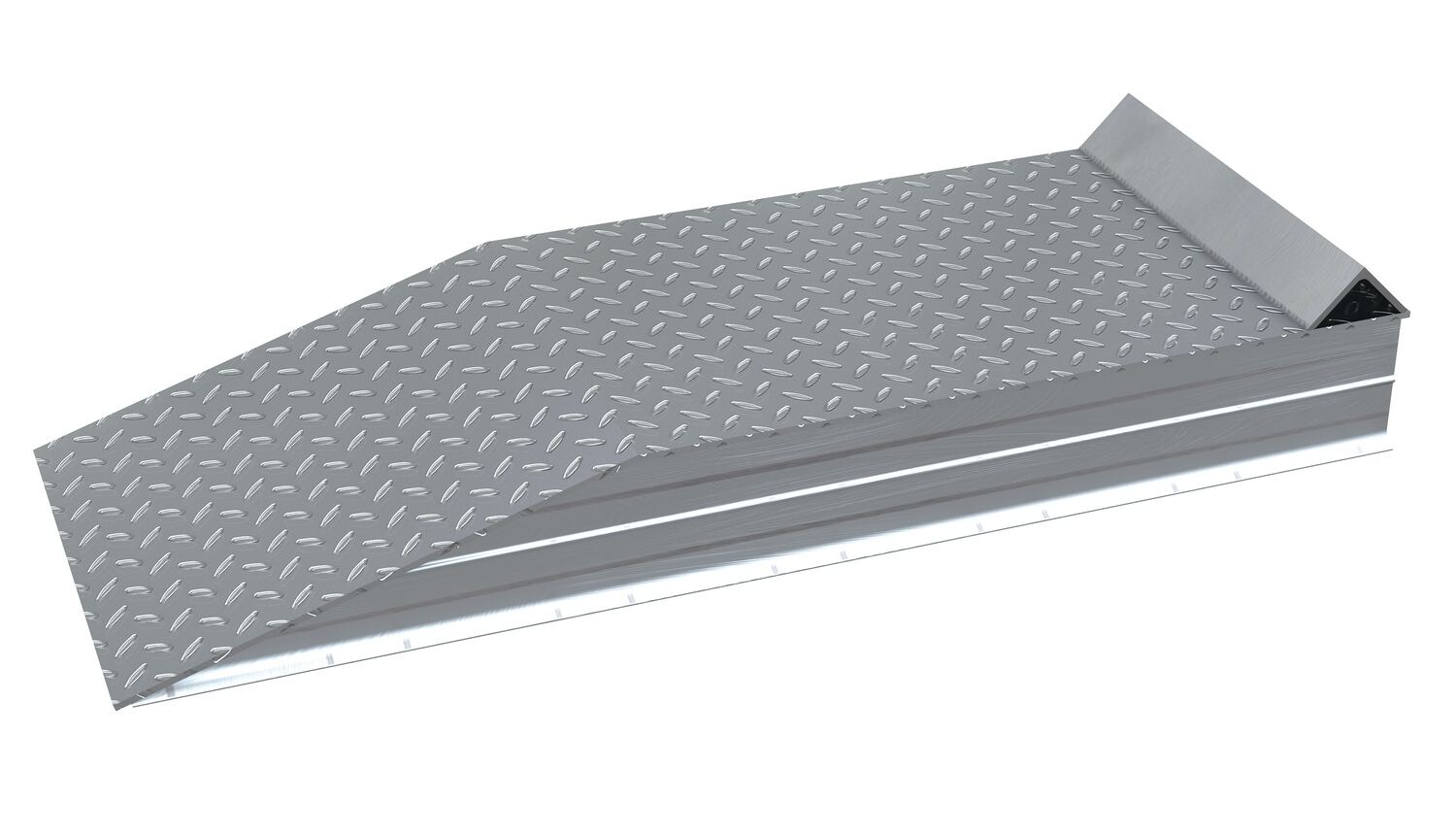 Aluminum Tread Plate Wheel Riser with Roll Off Guard 66 In. x 24 In. x 10 In. 30000 Lb. Capacity SilverA standard wheel riser is a great asset to have available when working in the shipping and receiving industries. But, this wheel riser is more than standard. With an aluminum construction, this unit includes a roll off edge guard that acts as a stop point. This allows the user to safely mount the wheel riser without the fear of going too far. The raised tread surface gives added traction throughout the ascending and descending action.