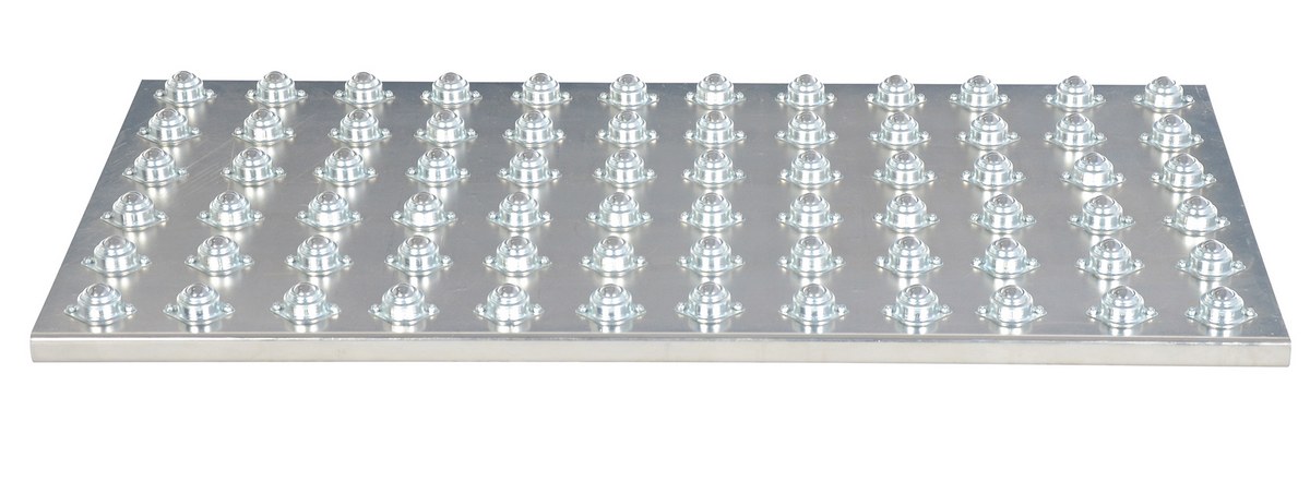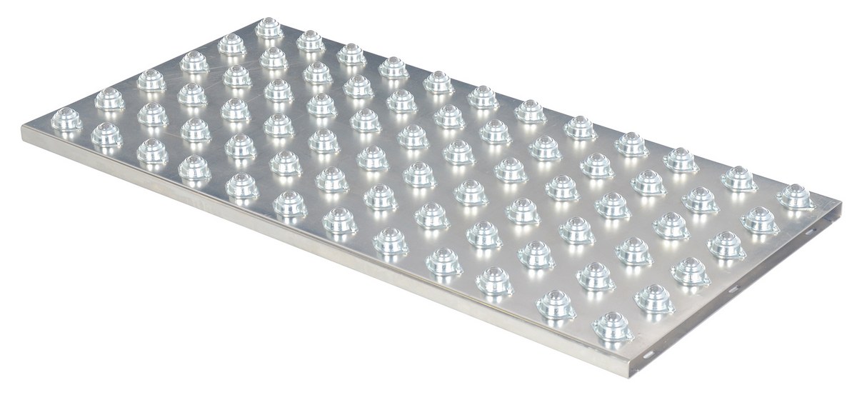 The ball transfer platform unit simply bolts on to any platform. The chrome ball transfers have a square pattern. Can attach to hydraulic and mechanical post tables and lift tables.
