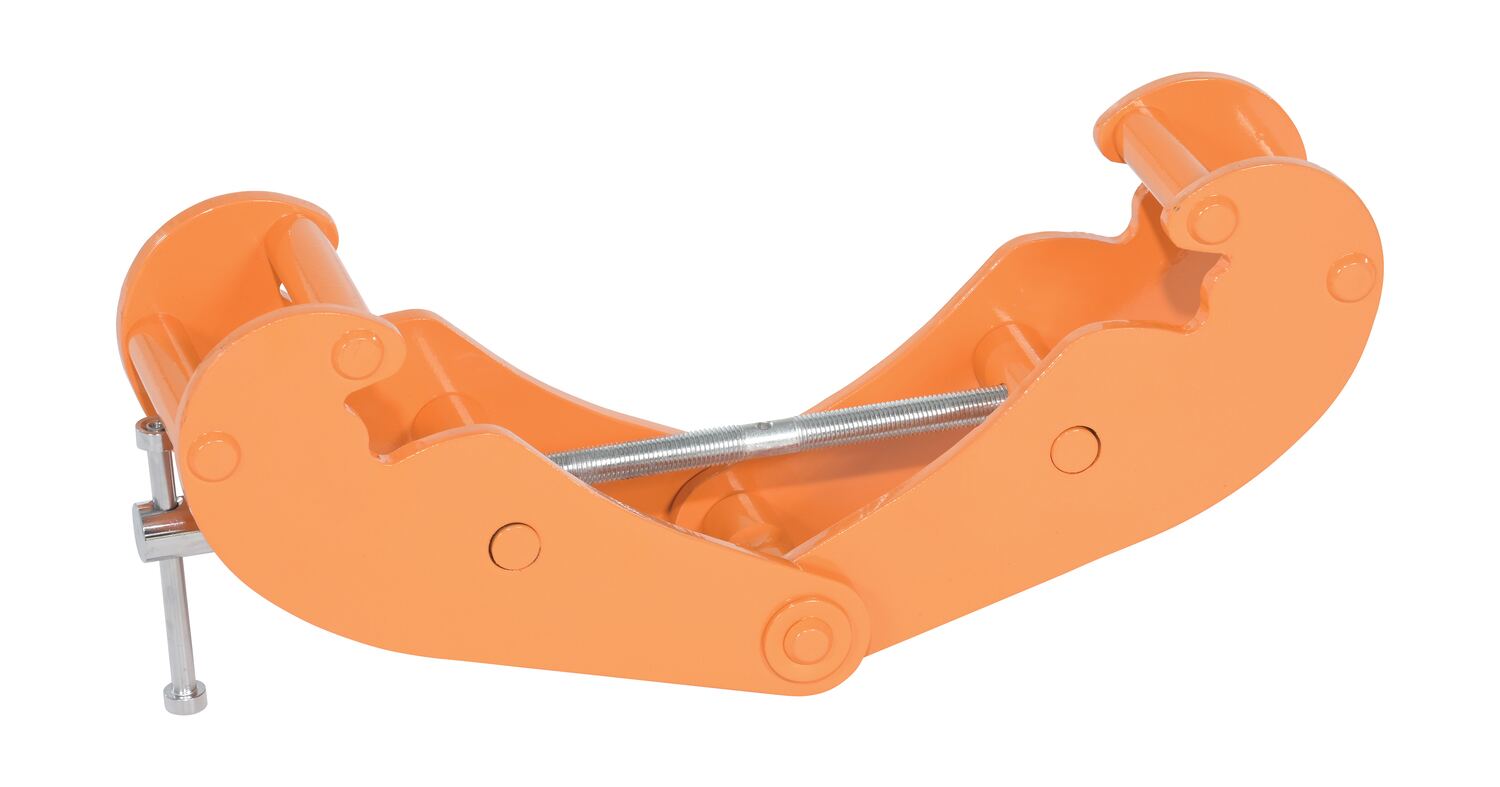 Steel Beam Clamp Horizontal Lift Style 21-1/4 In. x 5-1/4 In. x 7-3/4 In. 10000 Lb. Capacity OrangeThe beam clamp is designed to reduce the I-beam flange stress by distributing loads away from the flange edges during overhead lifting applications. This versatile unit can be interchanged from one gantry to another in a matter of seconds. A bar is located at the bottom of the beam clamp for attaching a hoist (sold separately). Painted finish.