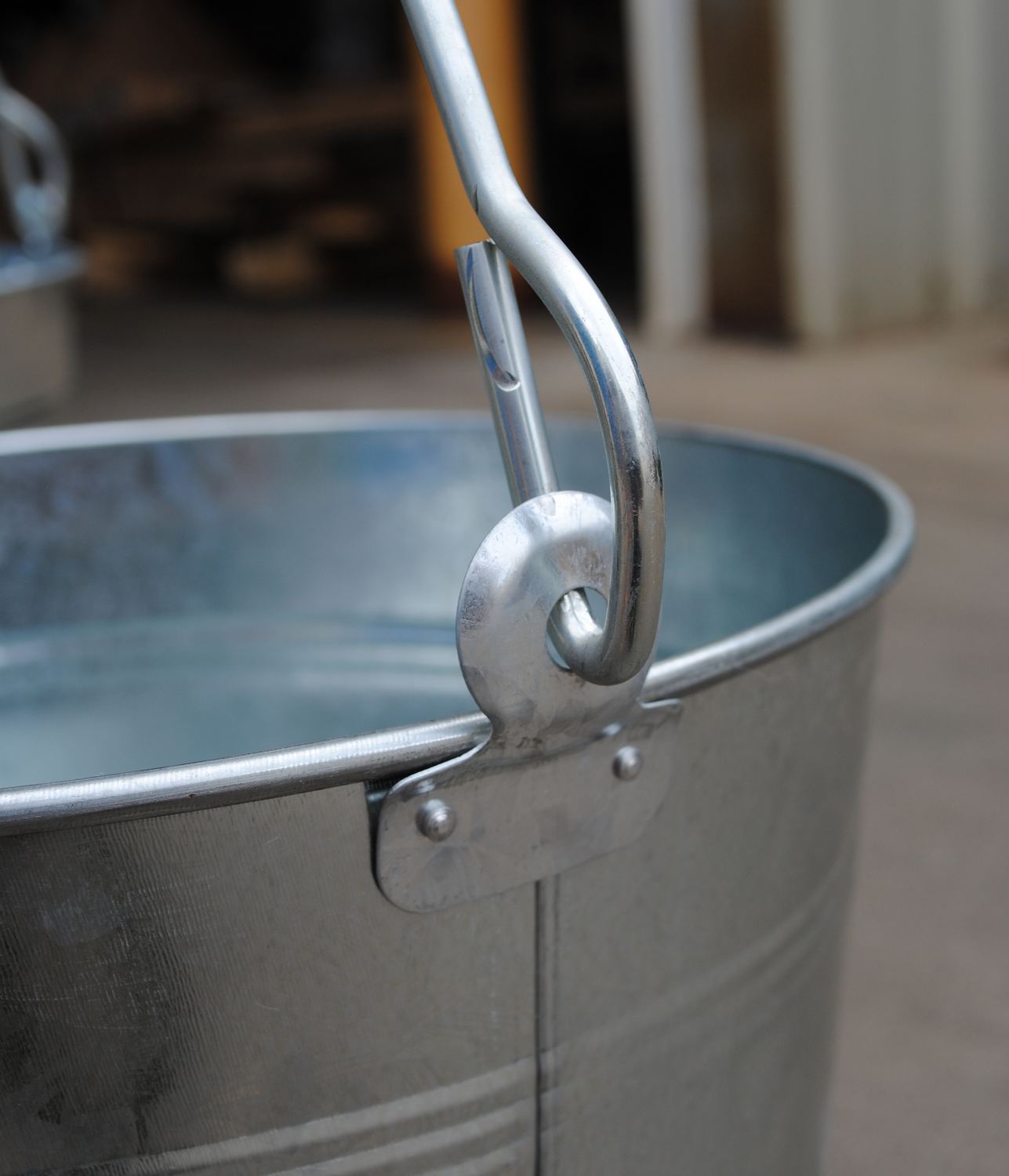 This Galvanized bucket is for use in industrial and commercial applications where durability is required. Buckets are nestable and come standard with a carrying handle/bail for easy transport. Galvanized steel construction.