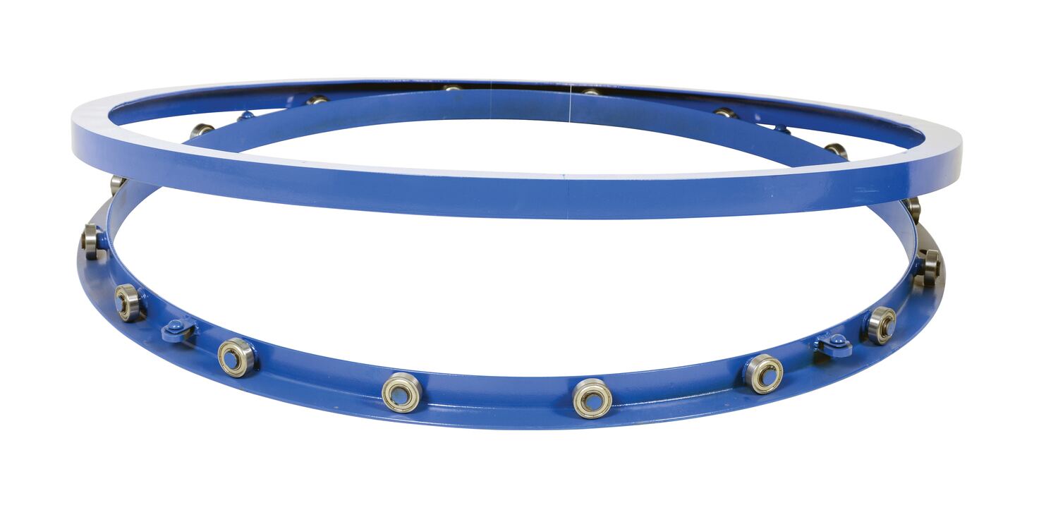 The manual carousels rotate materials with the assistance of an operator. Now loading and unloading operations can be done more efficiently; minimizing fatigue and risk of back injury. The carousel may be added to an existing work bench, scissor table, or simply placed on the floor. Constructed of two pieces of rolled structural angle. A series of standard sealed ball bearings transfer the load smoothly and evenly to the supporting surface.