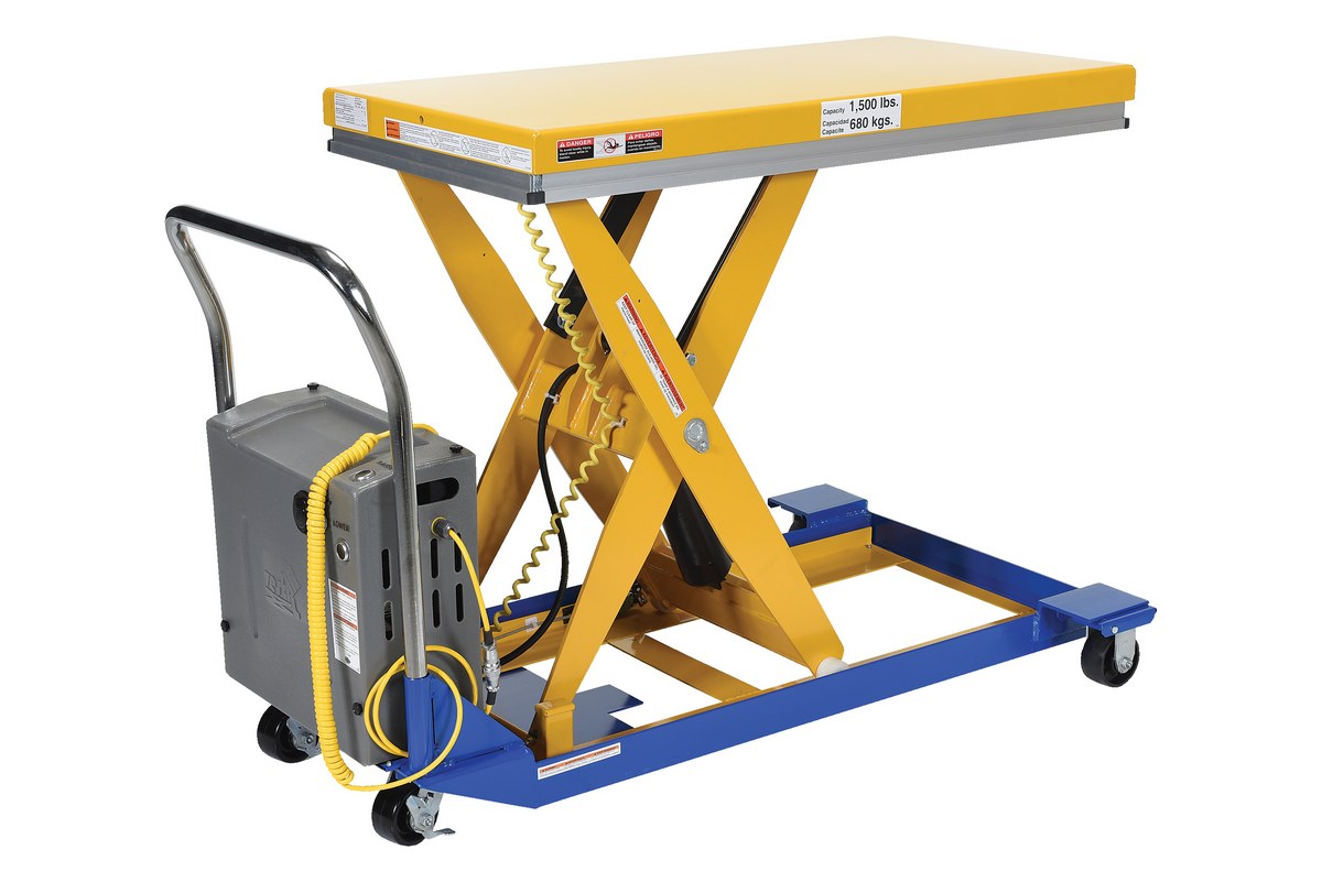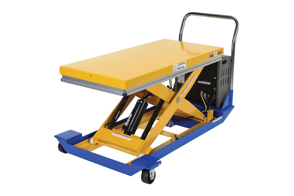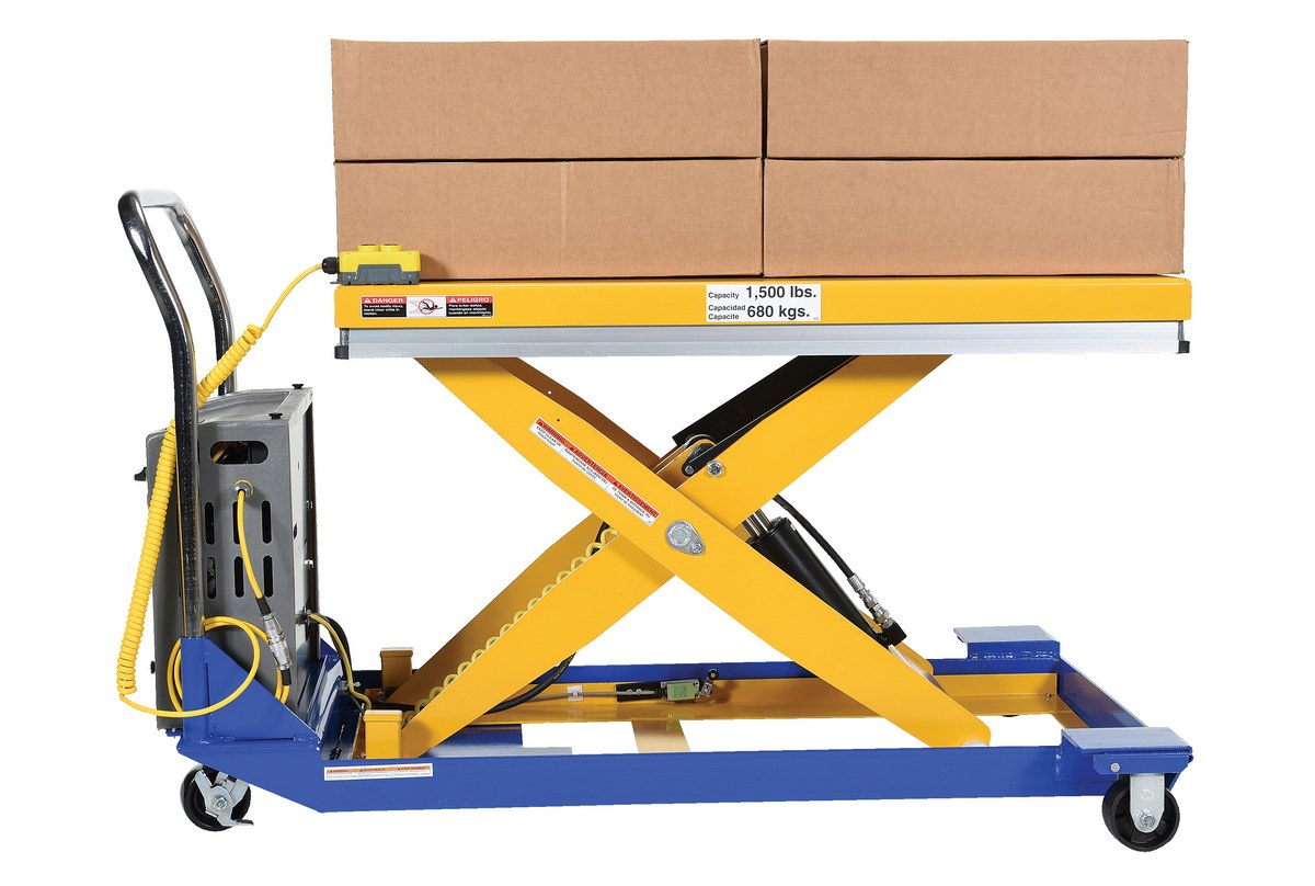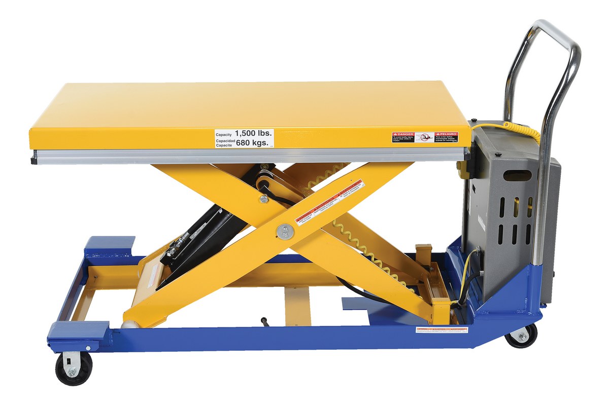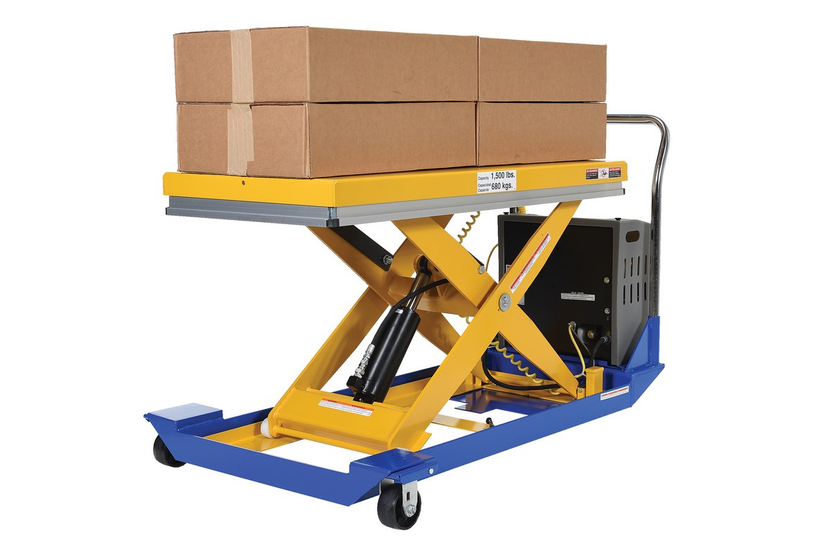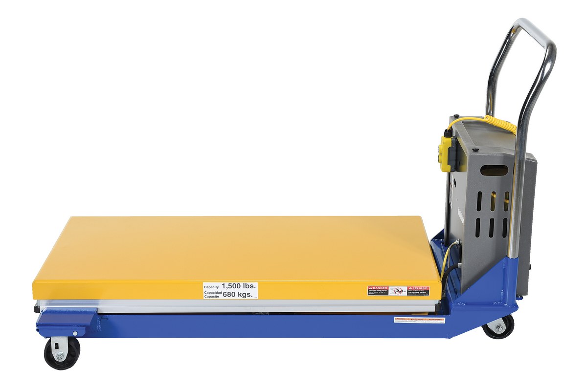 Steel DC Powered Scissor Cart 48 In. x 24 In. 1500 Lb. Capacity Blue / Yellow