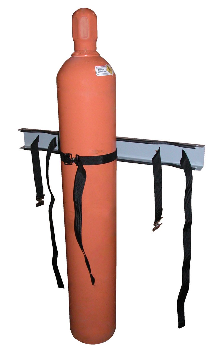 Wall mounted Cylinder bracket, simple design and is easy to install. Simply bolt to wall and then secure cylinder with strap. Edges are protected with rubber guards. For use in non-moving, static environments. Installation hardware is not included.