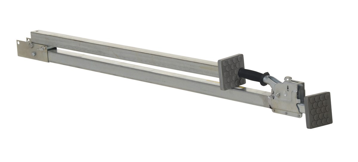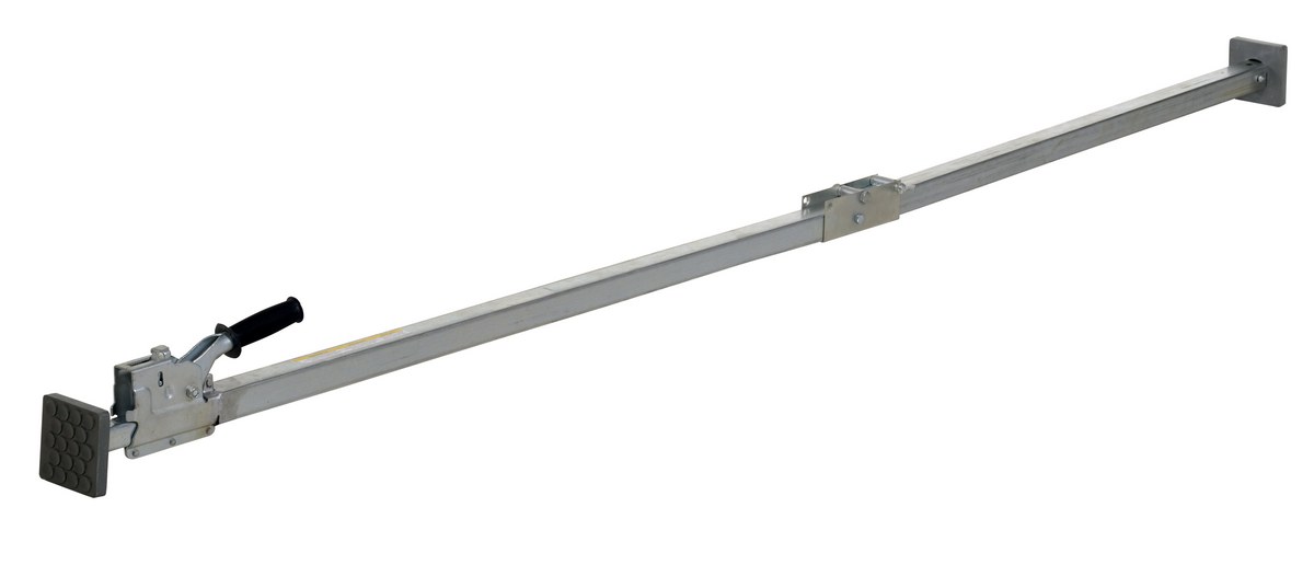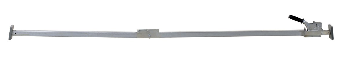 The two Piece folding cargo bar keeps trailer contents in place to eliminate damaged goods. It has a simple mechanical lock that will not vibrate loose. The cargo bar is constructed of square tubing with a wall construction that is lightweight yet extremely strong. Square articulating steel end plates feature pads for positive gripping action, end plates and fit between trailer walls.