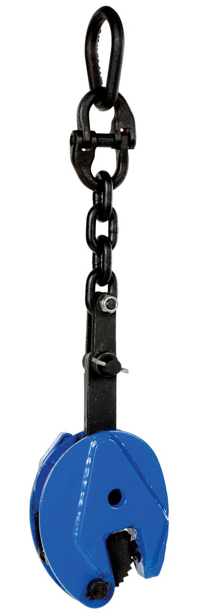 Steel Vertical Plate Clamp with Chain 4 In. x 1-31/32 In. x 16-7/8 In. 1000 Lb. Capacity BlueThe vertical plate clamp is designed for lifting plate material in a vertical position.Heavy-duty steel construction for years of reliable use. Not designed to use on stainless steel or aluminum plates.