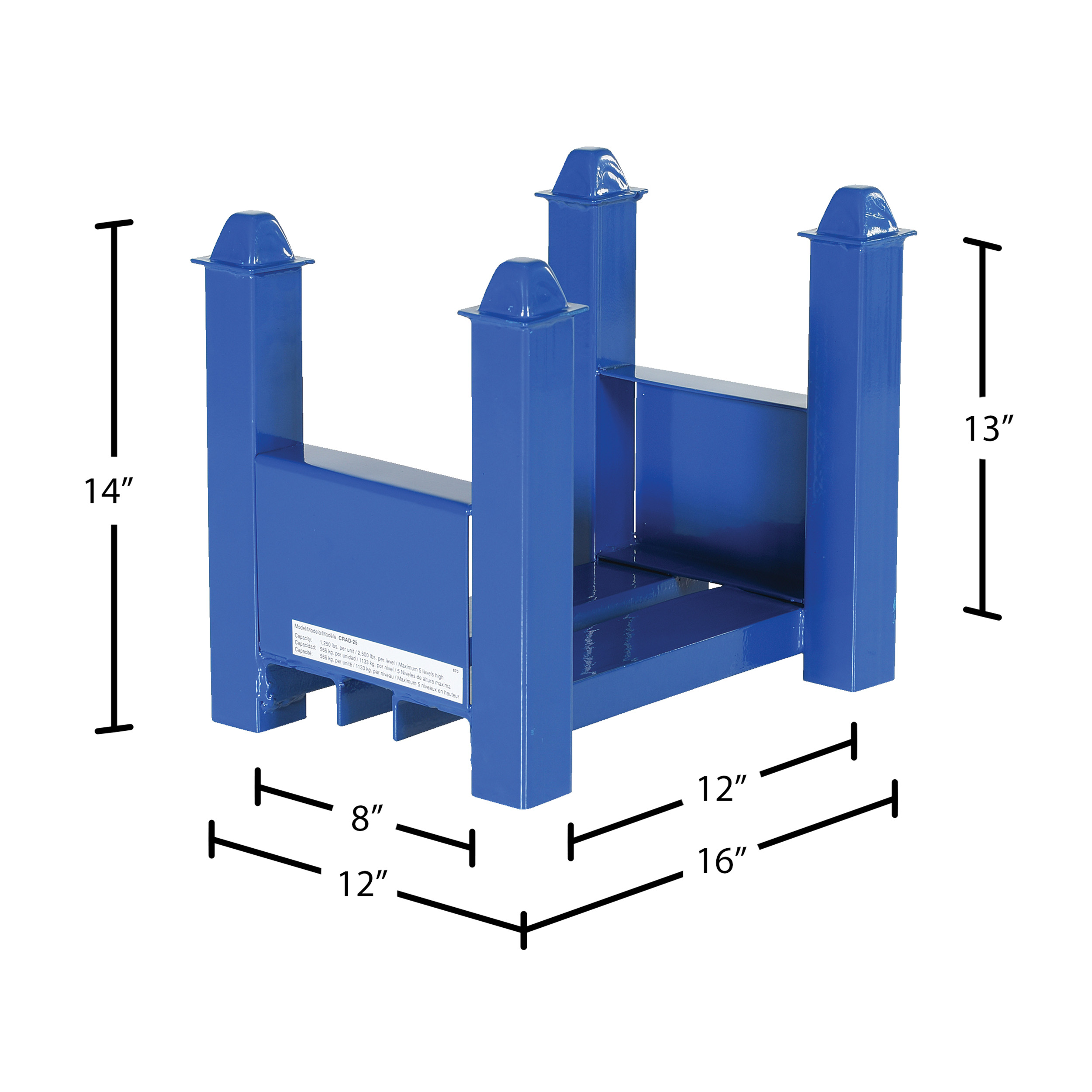 Steel Stackable Bar Cradle 16 In. 2500 Lb. Capacity BlueStackable bar cradle; a sturdy welded steel rack that is strong enough to handle heavy loads. Allows for custom design by choosing length, depth, and height of individual storage systems. Welded steel construction with blue painted surface.