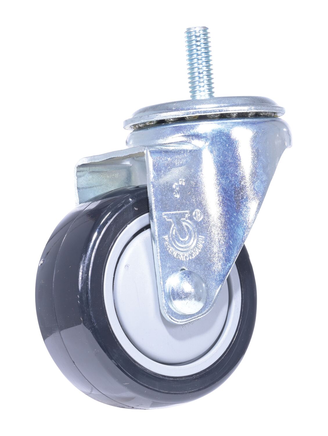 Polyurethane/Polyolefin Swivel Caster 3 Inch Diameter x 1-1/4 Inch Width 300 Lb. Capacity Black/GrayPolyurethane/Polyolefin casters are great for a variety of industries with their limited rolling resistance and ability to withstand rough environments. The construction is non-staining and corrosion resistant to a variety of outside substances. Swivel design allows the user to maneuver and change directions instantaneously. Wheel core is constructed of Polyurethane/Polyolefin.