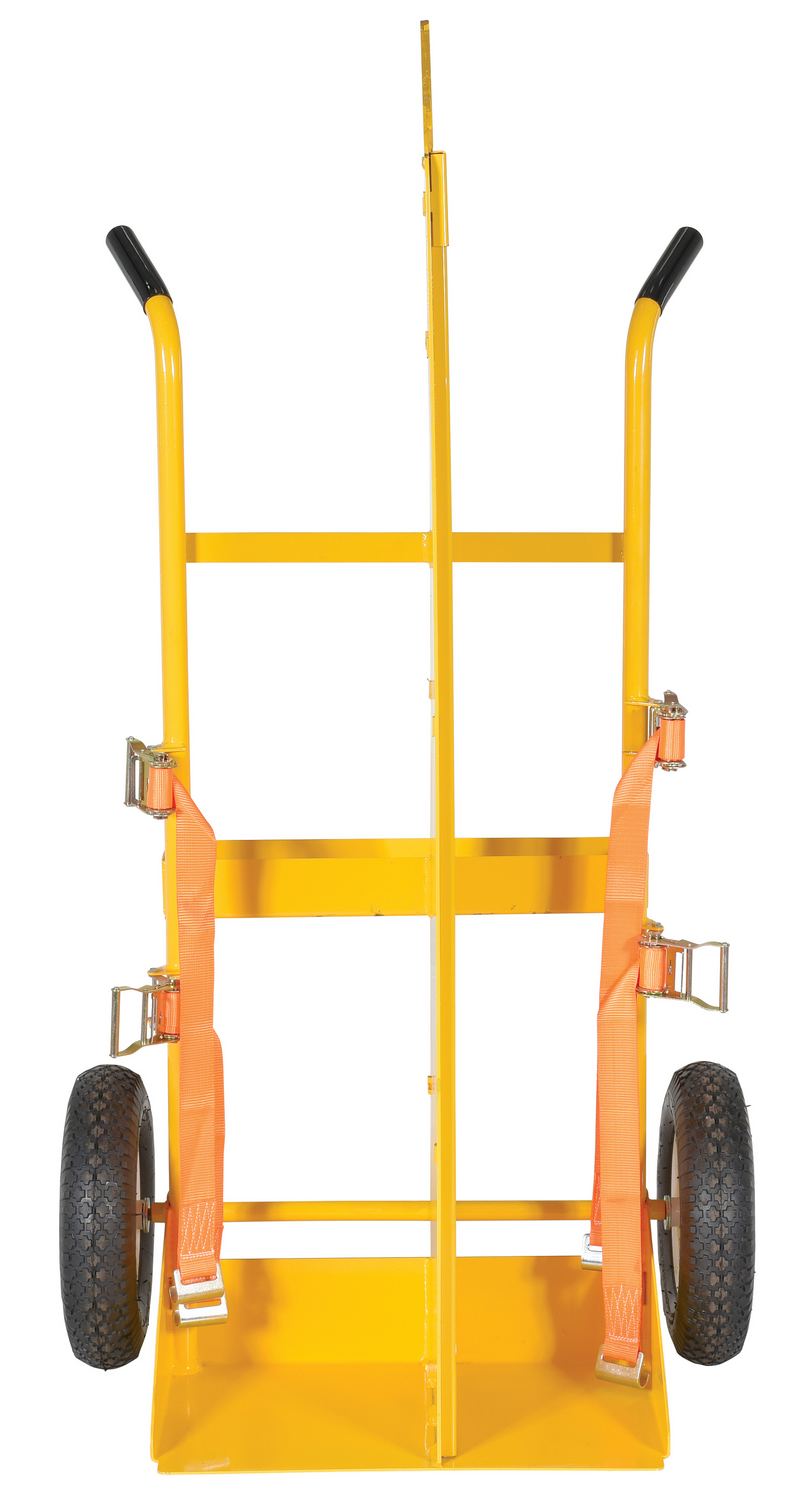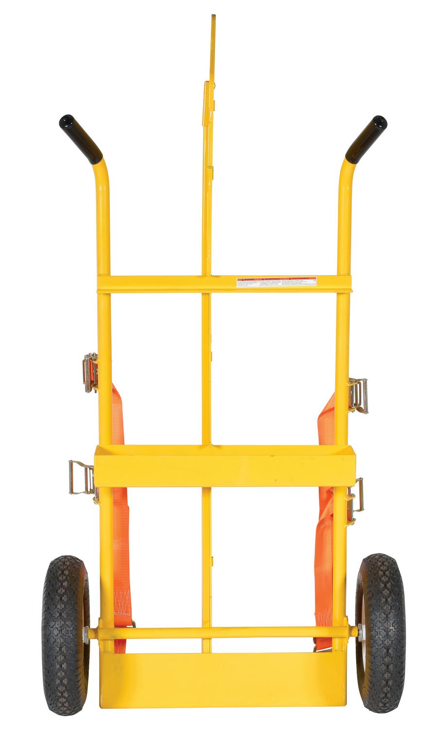 Steel Torch Cart-Lift Eye-Fire Proof 23 In. x 34-1/2 In. x 66-3/8 In. 500 Lb. Capacity YellowThe welding Cylinder torch cart is designed for transporting cylinders and cutting torch. Includes two (2) tank compartments with heavy-duty ratchet straps. Convenient open-top storage tray. Brackets are included for holding cutting torch and hose. Sturdy handles and large wheels for tilt-n-go portability. Welded steel construction with powder coat finish. Not designed for use as a storage means for gas cylinders.