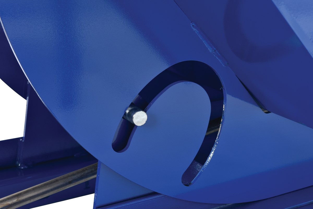 Steel Light Duty Self Dumping Hopper 1 Cubic Yard 2000 Lb. Capacity BlueThis Light Duty self-dumping steel Hopper with bumper release automatically dumps when bumper release contacts the front of the dumpster. Hopper returns to an upright and locked position automatically after it dumps. Also includes a cable that may be operated from the seat of the fork truck to manually dump the hopper. The included safety restraint should be properly secured to a fork truck before dumping. (Length dimension is measured at top of chute.) Hopper is stackable if you stack the top hopper turned ninety (90) degrees from the bottom. Self-dumping hoppers facilitate compliance with OSHA general industry rule 29 CFR 1910.178(m)(5)(iii) by allowing lift truck operators to remain at the controls of their truck throughout the dumping process.