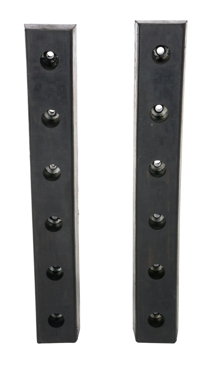 The hardened molded bumper is a pre-drilled bumper that is constructed of fiber reinforced rubber containing nylon and polyester for all weather conditions. This bumper provides high impact resistance and steel reinforcement rings molded into each bumper for installation. Bumper is sold individually and installation hardware sold separately.