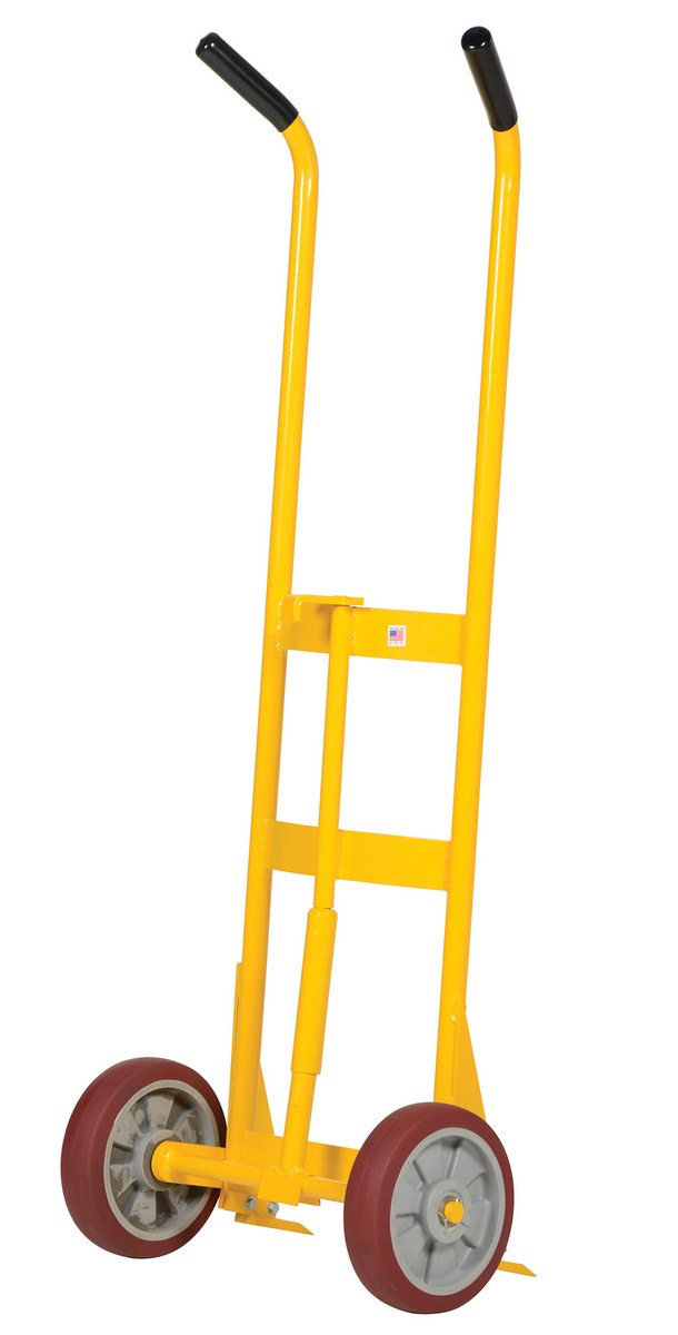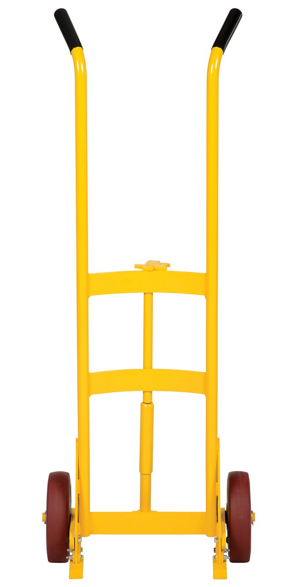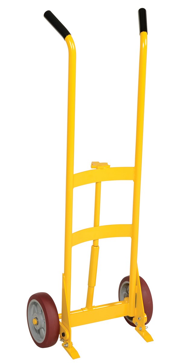 Steel Drum Truck with Spring Assist with Poly On Poly Wheels 1000 Lb. Capacity YellowDrum truck with spring assist is designed for moving steel drums. Special design features spring mechanism for easy use. Spring allows for easier tilting of fully-loaded drums. Removable hook bar includes built-in bung nut wrenches.