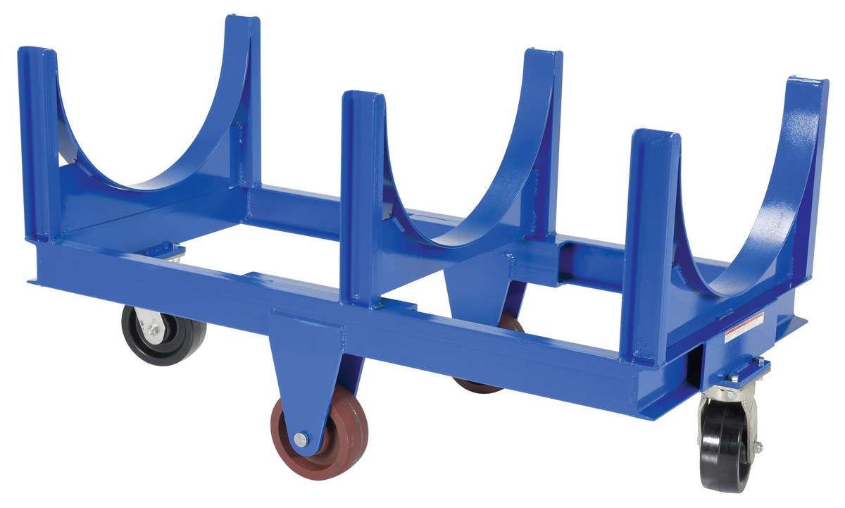 Steel Heavy Duty Cradle 63-1/16 In. x 31-1/2 In. x 32-3/8 In. 10000 Lb. Capacity BlueMove and store pipe, channel, bar stock, barrels, or drums with this Heavy Duty cradle cart. A large open design that makes loading and unloading by fork trucks and slings easy. All welded construction. Wheels are mounted in a diamond pattern to allow the truck to tilt when going over thresholds and turn about on its own center. Lightweight Aluminum cradle cart fits all small to medium loads. Powder coat finish standard on steel cart.