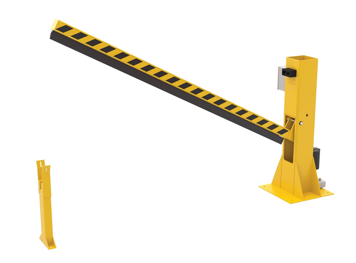 The dock barricade is an active barrier that represents the next generation of innovative loading dock safety systems. The electric/hydraulic power unit provides quick and effortless operation. It is electronically operated and consists of an electrical bumper-style safety stop circuit to sense obstructions when lowering. Includes a lock bar on the arm post to restrict rotation of the barricade arm, padlock not included. Installation is simple, anchor the unit to the floor and plug in.