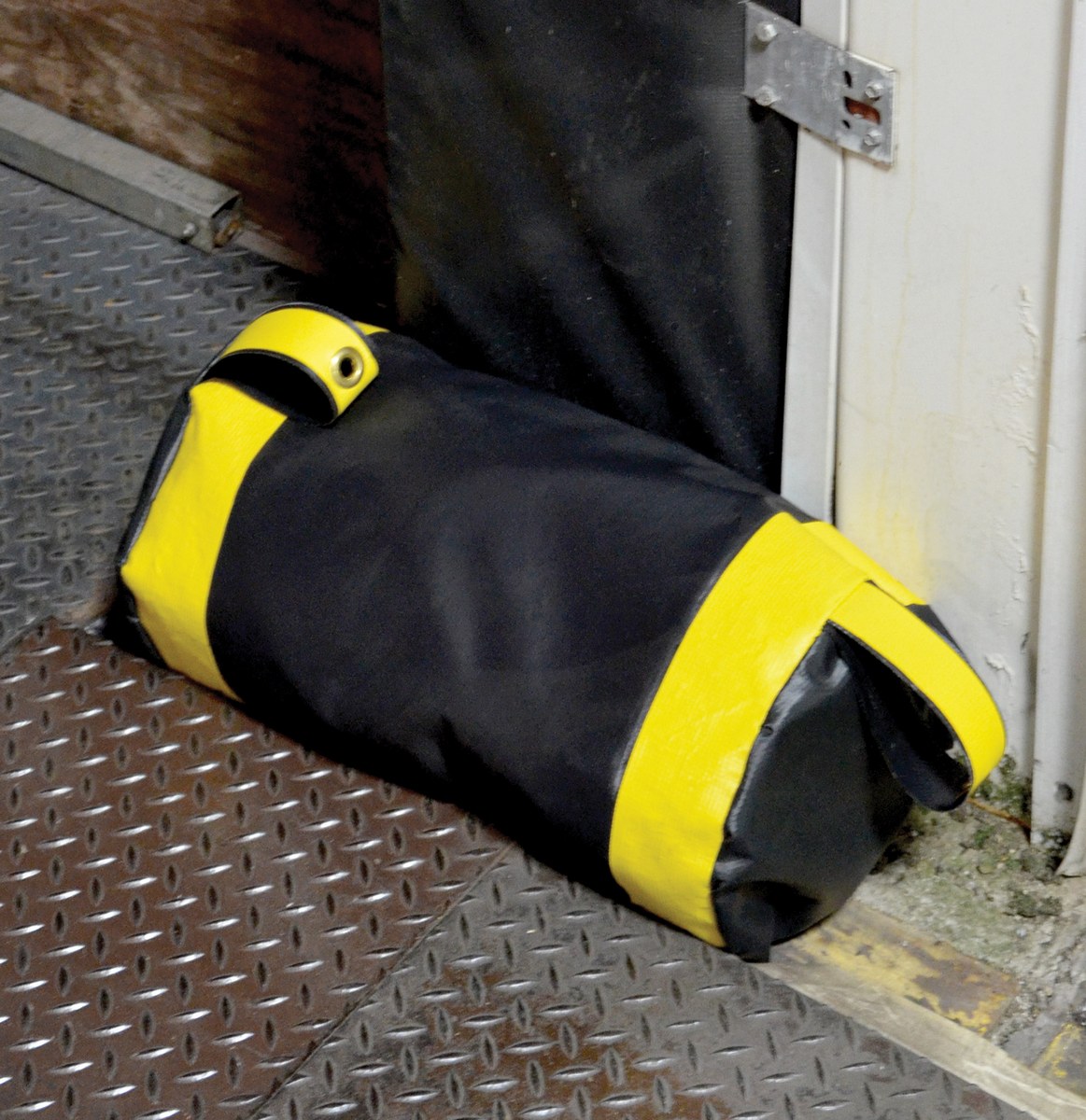 The Dock Seal draft blocker is ideal for blocking drafts between dock seals and dock levelers. Design features include; a vinyl construction for durability, a heavy weighted base for effective sealing, top carrying handles for easy portability, foam filled interior for compressibility, and an air vent to shape blocker back into original form.