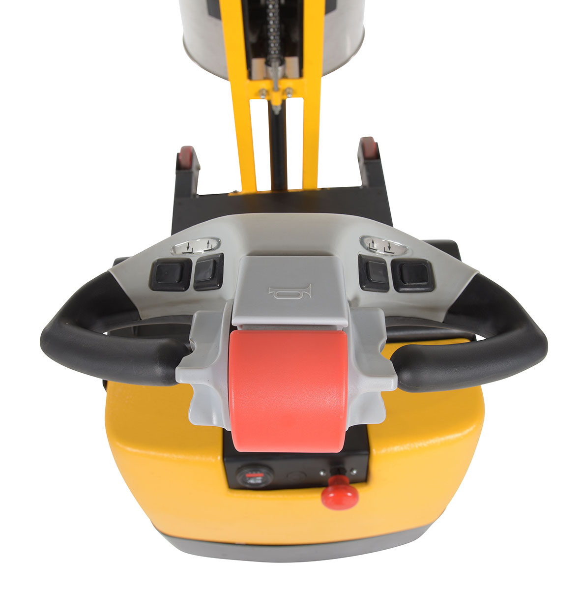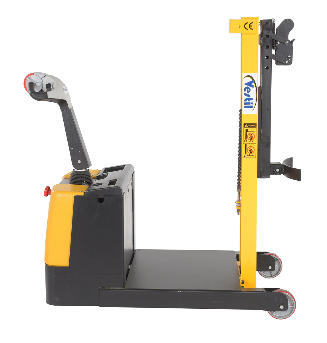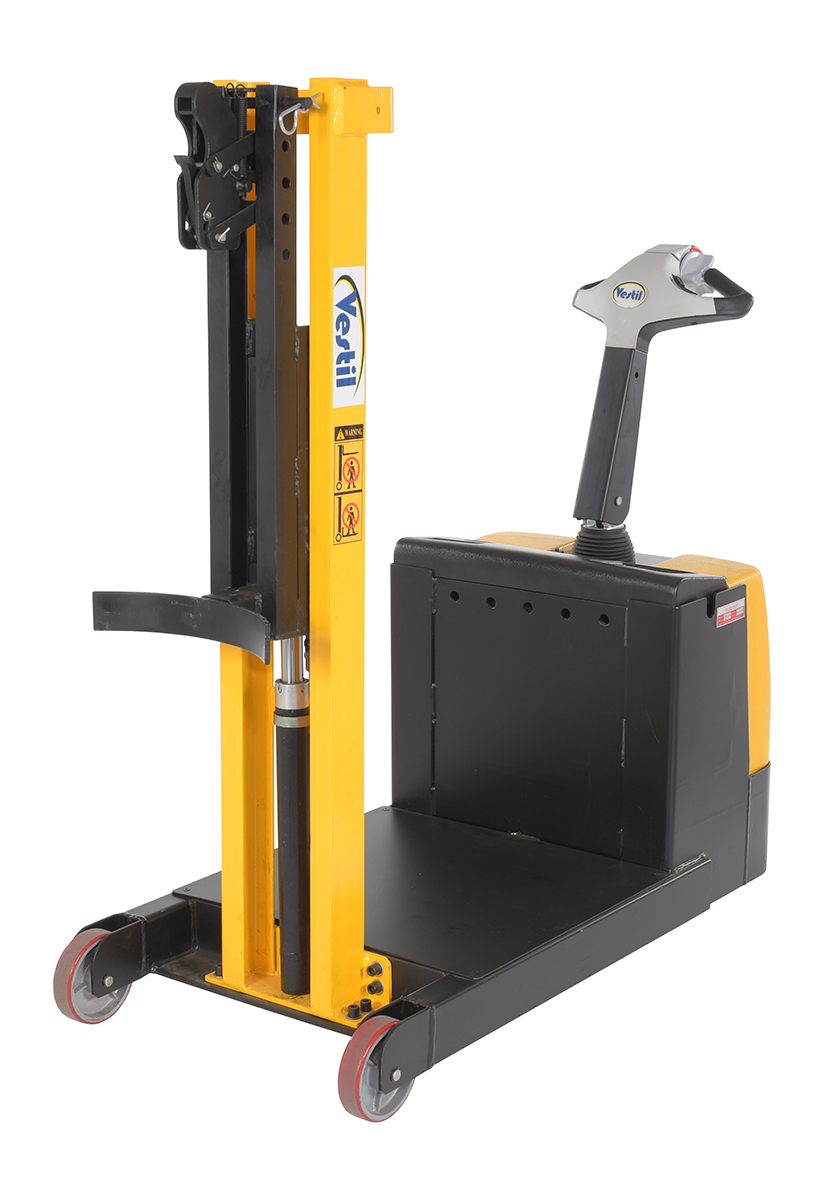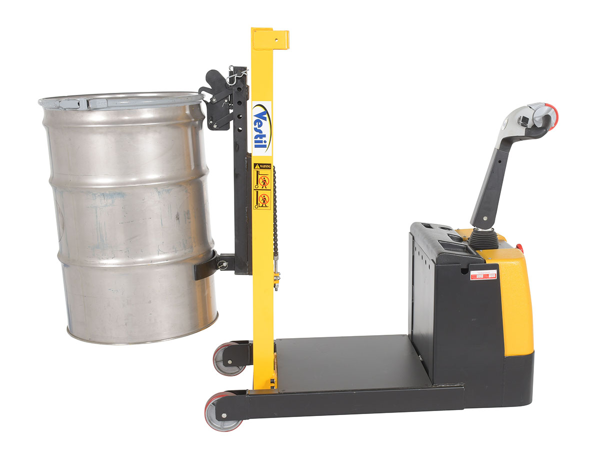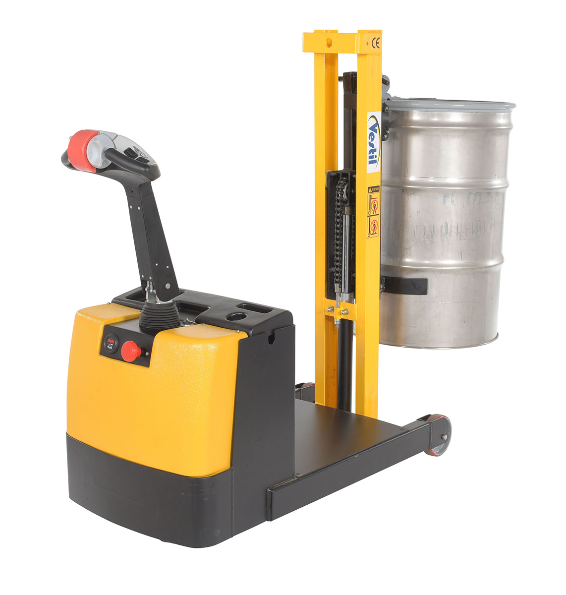 Steel Powered Drive Powered Lift Counter Balanced Drum Stacker 24V 57 In. x 26 In. x 58 In. 700 Lb. Capacity YellowDrums have always been heavy and difficult to move. But, with the counter balanced drum lifter and transporter, those days are over. With a walk behind design and an ergonomic handle, the power and drive controls are quickly within the users reach. Design is perfectly suited for tight areas and loading/unloading drums onto pallets or scales. This unit includes a powered drive and a powered lift.