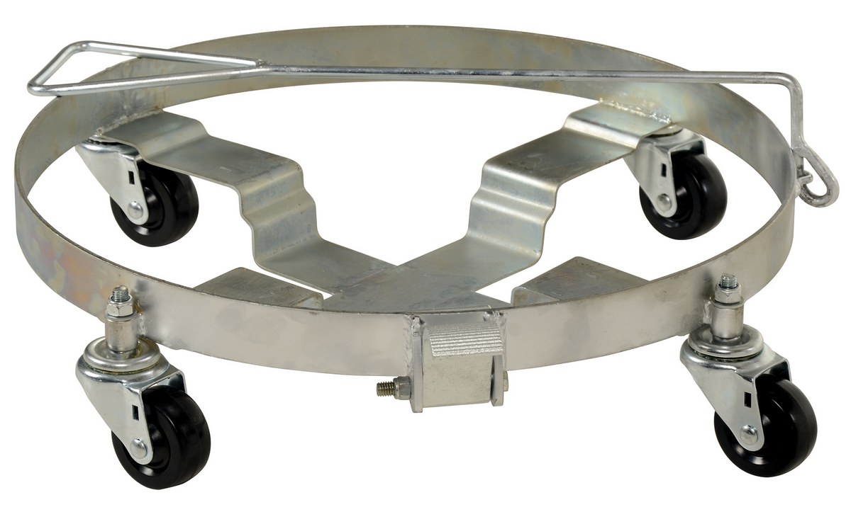 | Transports: 5-gallon pail, 30 & 55-gallon drums | Caster Quantity/Diameter/Width (in.): (4) 3 x 1-1/4 | Caster Material: Hard Rubber |