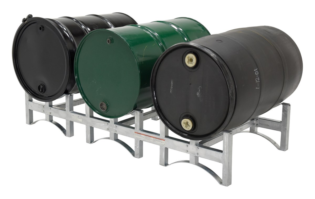 Galvanized Steel Stackable Drum Rack 3 Drum 55 Gallon 2400 Lb. Capacity Gray
