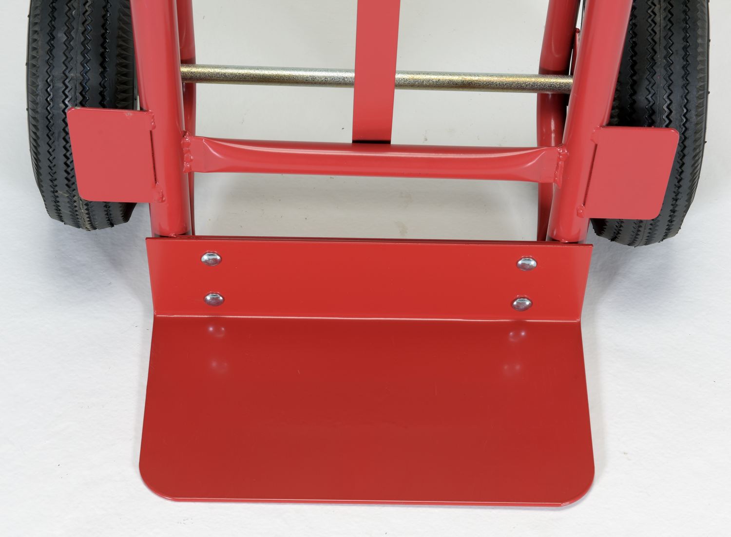 Steel Convertible Hand Truck 17 In. x 20 In. x 48 In. 500 Lb. Capacity RedThe steel convertible Hand Truck is a versatile wonder. This hand truck can work in both the vertical and horizontal positions. The task of transporting smaller crates or long narrow boxes is now simplified. This cart rolls smoothly on pneumatic wheels and solid rubber casters. Ships knocked down.